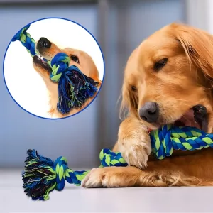 Zo’n leuke manier voor mijn terriër om overtollige energie kwijt te raken! Het materiaal voelt veilig aan en ik vind het fijn dat de knopen nieuwe plekken bieden om op te kauwen.