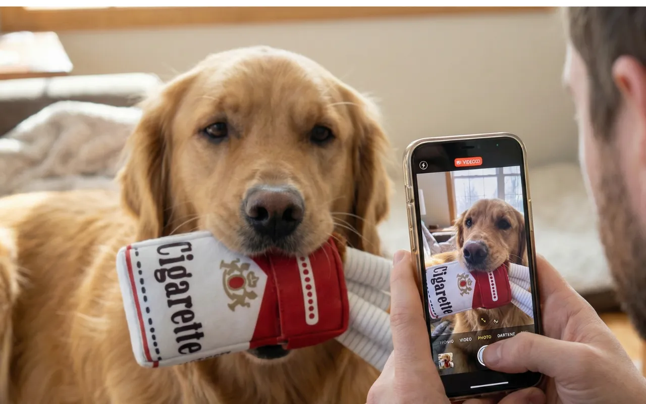 Het gekke sigarettenspeeltje houdt onze hond bezig en laat het hele gezin lachen.