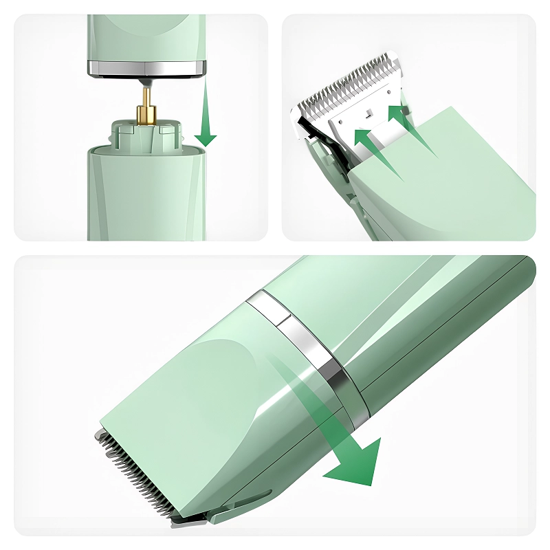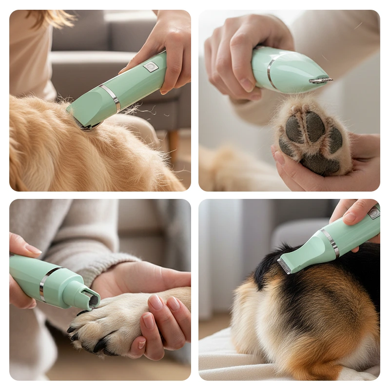 Schakel tussen vier koppen voor volledige zorg voor huisdieren. Geen extra apparaten nodig, alle trimbehoeften zijn gedekt.