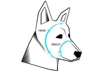 - 1. Wikkel het meetlint één inch (2,5 cm) onder de oogbasis om de snuit.
