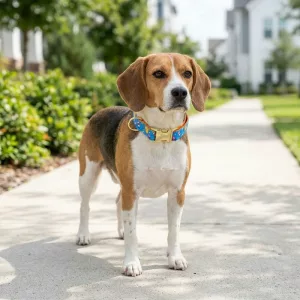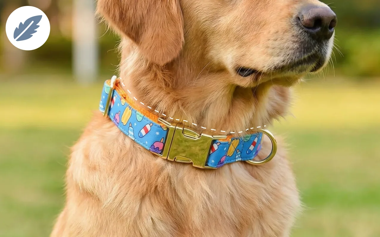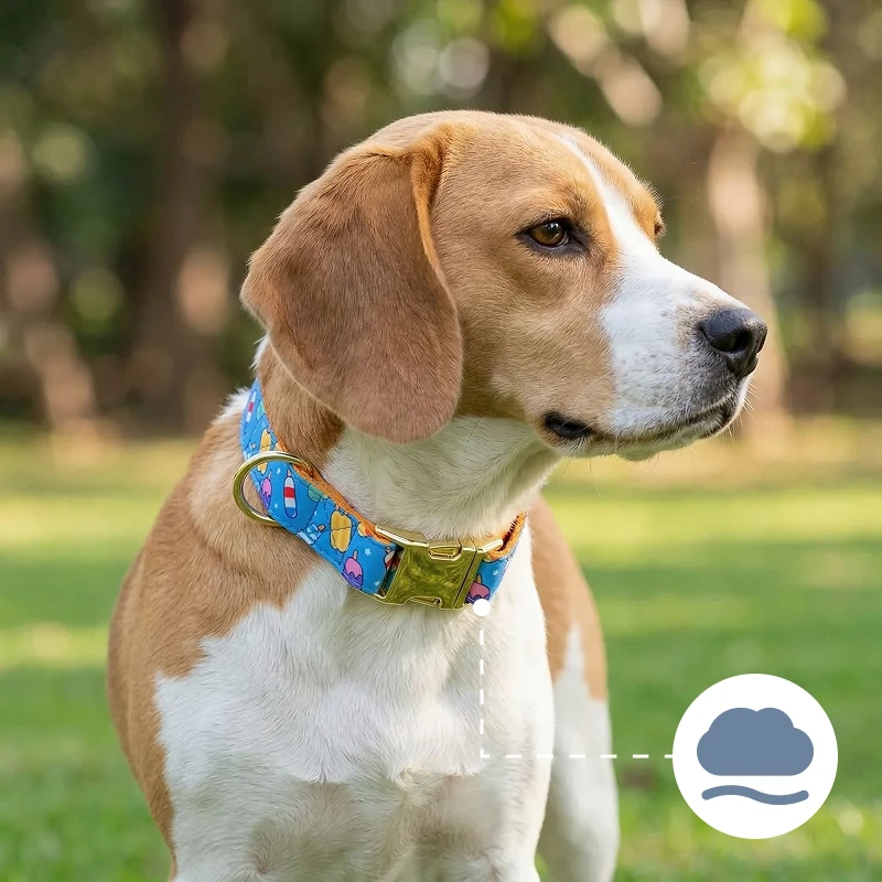 De print is schattig en maakt mijn hond gemakkelijk te herkennen van veraf. Hij heeft totaal geen last van zijn nek, zelfs niet na veel rennen!