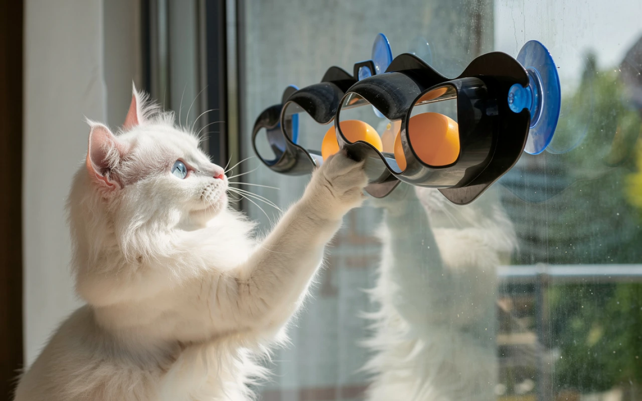 Bevestig het aan glas, tegels of gelakt staal voor netjes speelplezier. Houd de vloer vrij terwijl je huisdier urenlang geniet van plezier.