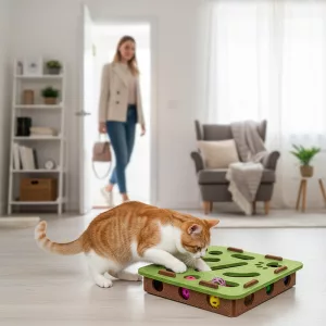 De nieuwsgierigheid blijft sterk terwijl huisdieren de bewegende ballen over de puzzel volgen. Dit slimme speelgoed houdt de geest scherp en maakt binnen dagen vol plezier.