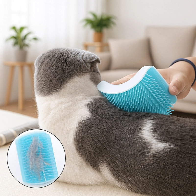 Deze hoekborstel past goed in mijn woonkamer. Mijn kat geniet van de massagetijd en ons huis ziet er nu netter uit. Echt een aanrader!