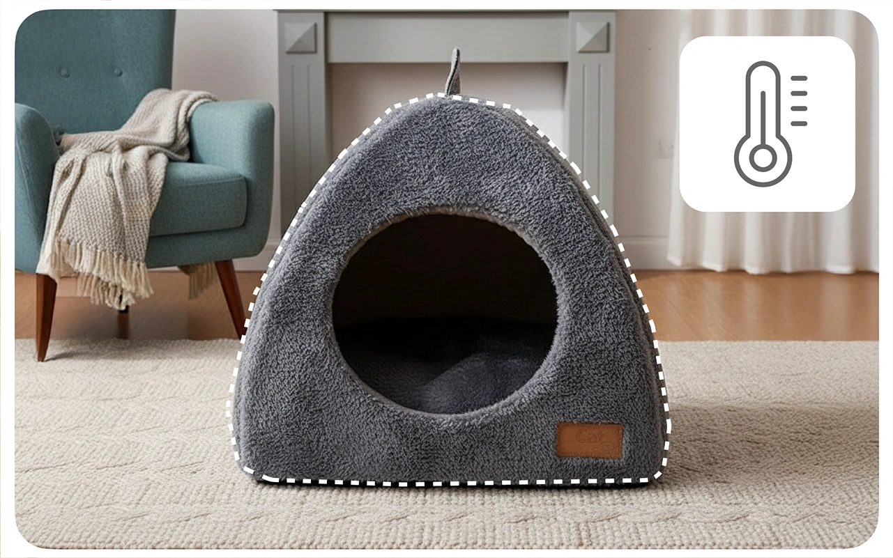 Dikke isolatie houdt koude lucht buiten, zodat huisdieren binnen lekker warm blijven. De zachte voering omhelst het lichaam voorzichtig en zorgt voor een rustige rustervaring.