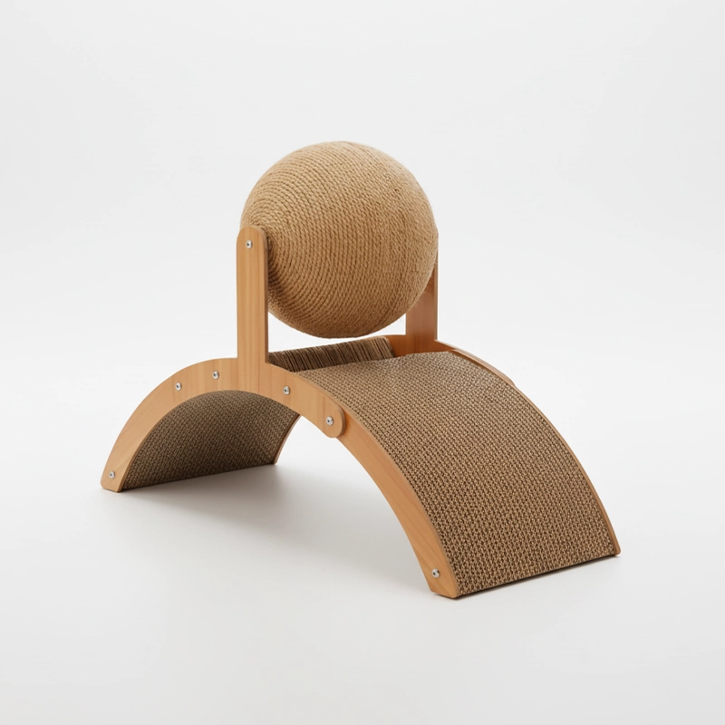 Gebogen brug en draaiende bal zorgen voor eindeloos plezier. Katten onderzoeken, krabben en ontspannen bij elk gebruik.