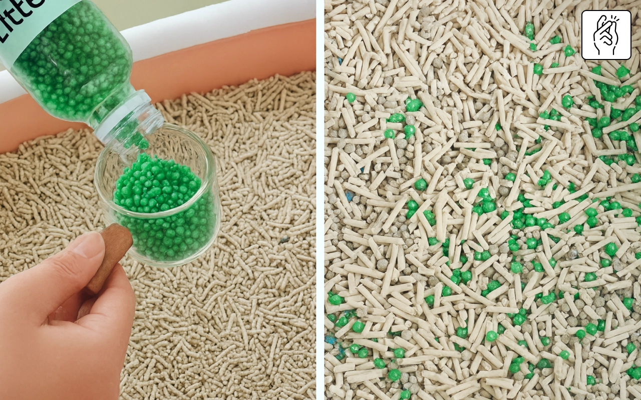 Strooi gewoon een paar korrels over het kattengrit voor blijvende frisheid. Geen extra stappen of gereedschap nodig voor een uitstekend resultaat.