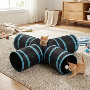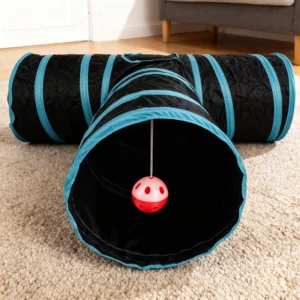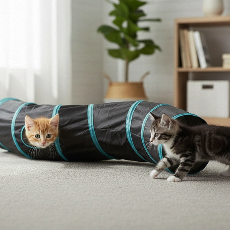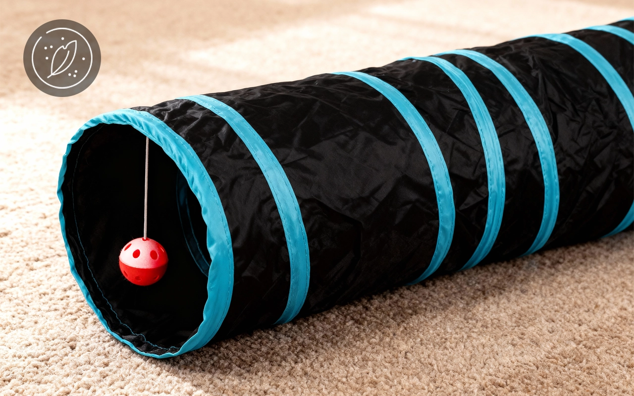 Mijn oudere kat heeft een nieuw favoriete nap-plekje! De stof van de tunnel is zacht en wordt niet te warm. Ze speelt graag en ontspant er daarna in.