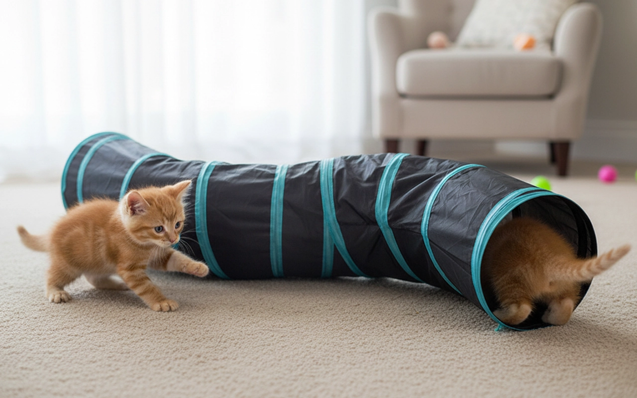 De tunnel is meteen het hoogtepunt van onze woonkamer! Ik zie mijn kat zigzaggen en loeren voor een spelletje jagen.