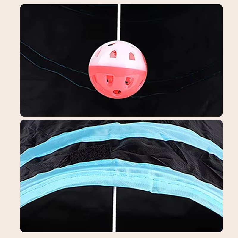 Ik ben verrast hoe stevig de tunnel is. Mijn twee katten spelen wild maar hij blijft in vorm. Hij is makkelijk op te bergen als we ruimte nodig hebben.
