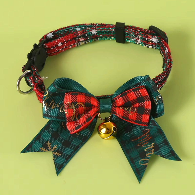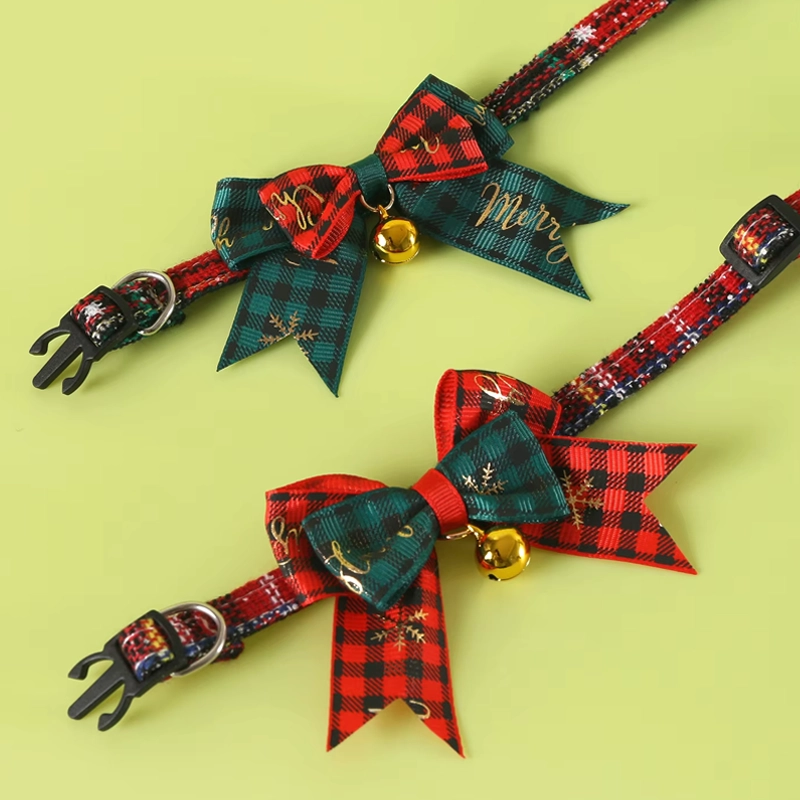 Mijn kat ziet er extra schattig uit deze kerst met haar nieuwe strik! Het geruite patroon is super leuk en het gouden belletje rinkelt als ze rondrent.