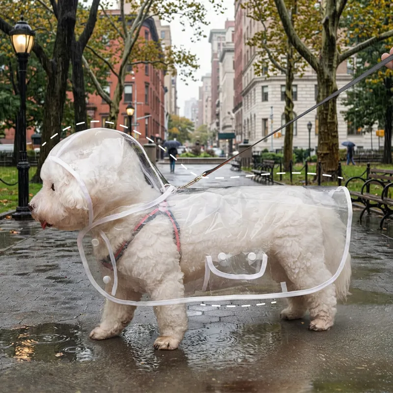 Regenachtige dagen houden vrolijke wandelingen buiten nooit tegen. De Primdog Transparante Hondenregenjas beschermt huisdieren tegen water, maar blijft licht van gewicht. Dankzij een verstelbare pasvorm zit elke hond comfortabel.