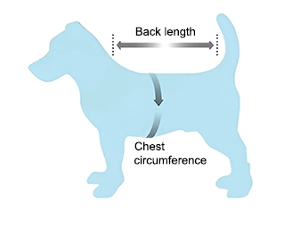 - 1. Meet de ruglengte van je huisdier vanaf de basis van de nek tot aan de staart.