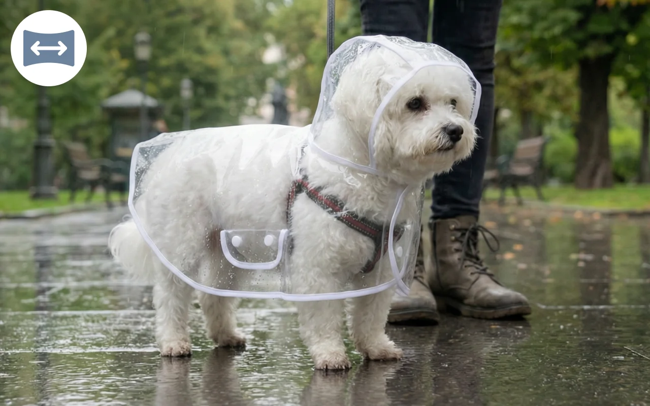 Wandelen in de regen is geen probleem meer. Mijn hond kan vrij bewegen en blijft warm. Het transparante materiaal is ook leuk.