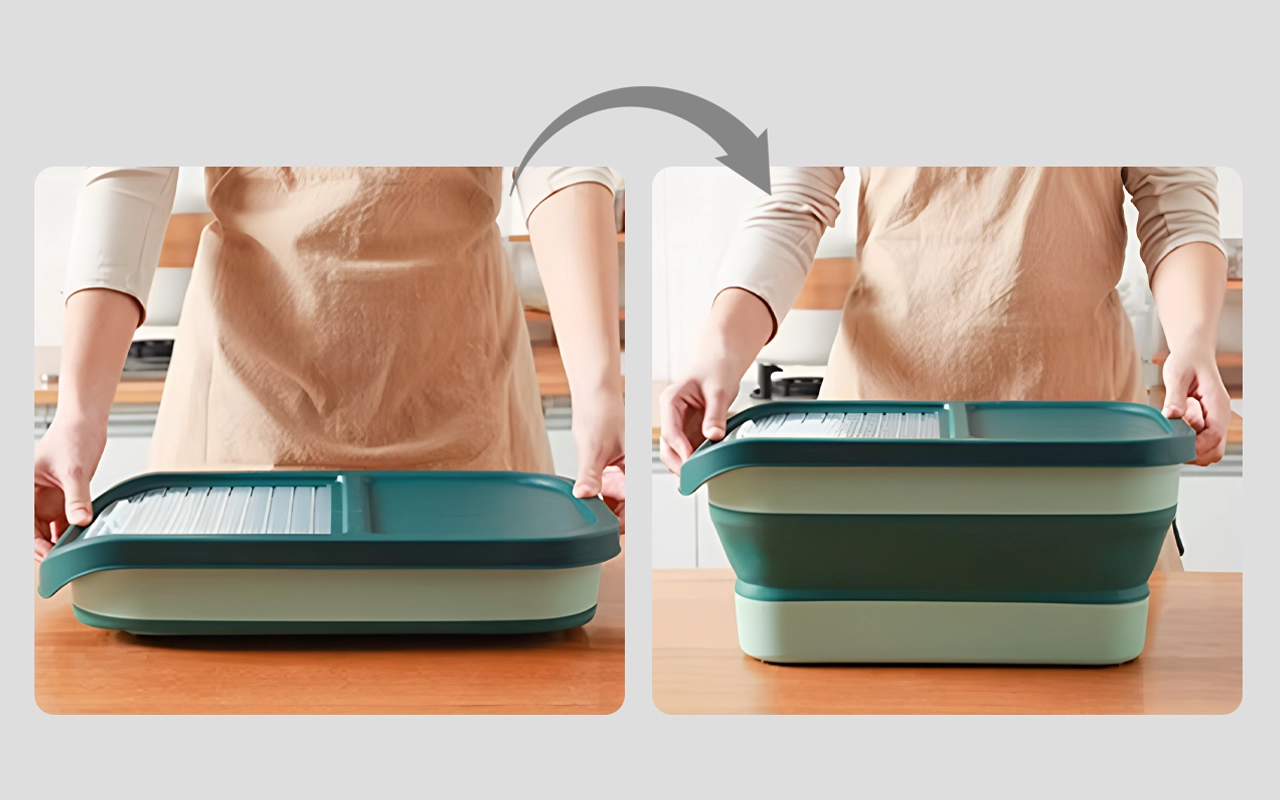 Vouwt in enkele seconden plat, waardoor kostbare ruimte in de keuken vrijkomt. Overal gemakkelijk op te bergen en eindelijk een einde aan rommelige stapels.
