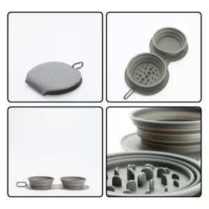 De kommen vouwen samen tot een compact formaat, waardoor ze gemakkelijk op te bergen zijn wanneer ze niet nodig zijn. Deze praktische functie houdt je woonruimte of reistas netjes en vrij van rommel.