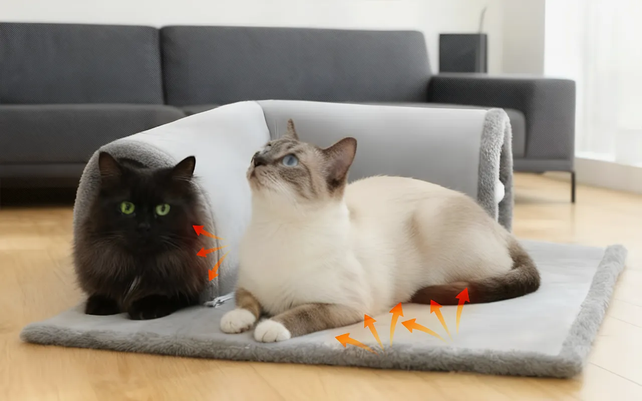 Pluche stof houdt huisdieren warm tijdens koude maanden binnen. Katten genieten comfortabel van loungen zonder het koud te krijgen.