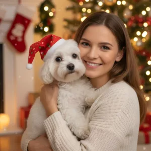 Iedereen stopte om te glimlachen naar mijn hond met deze hoed. Hij past goed, glijdt niet af en voelt echt zacht aan. Maakte onze kerstfoto’s extra bijzonder.