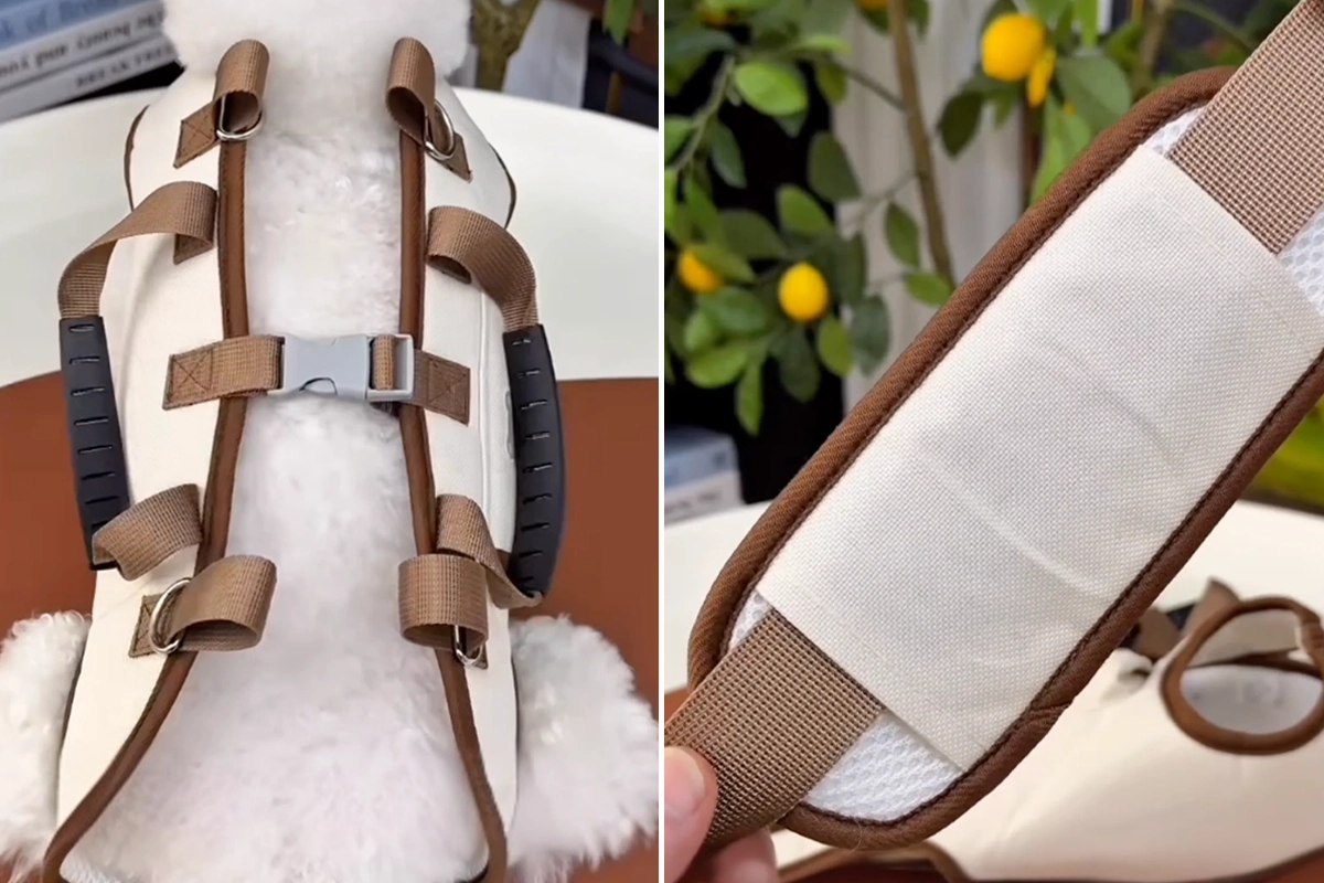 Mijn hond ontspant meteen als ik haar in het tuigje doe. Er is genoeg zachte vulling, dus ze blijft knus bij elke trip die we samen maken.