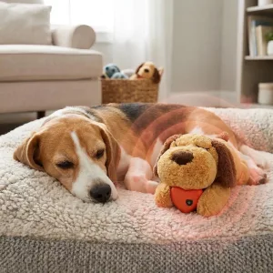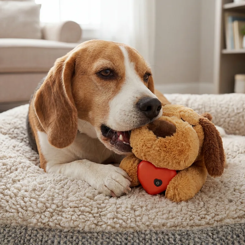 Mijn hond ging van de hele nacht piepen naar heerlijk doorslapen. De zachte hartslag is rustgevend en de pluche is perfect om te knuffelen en mee te spelen!
