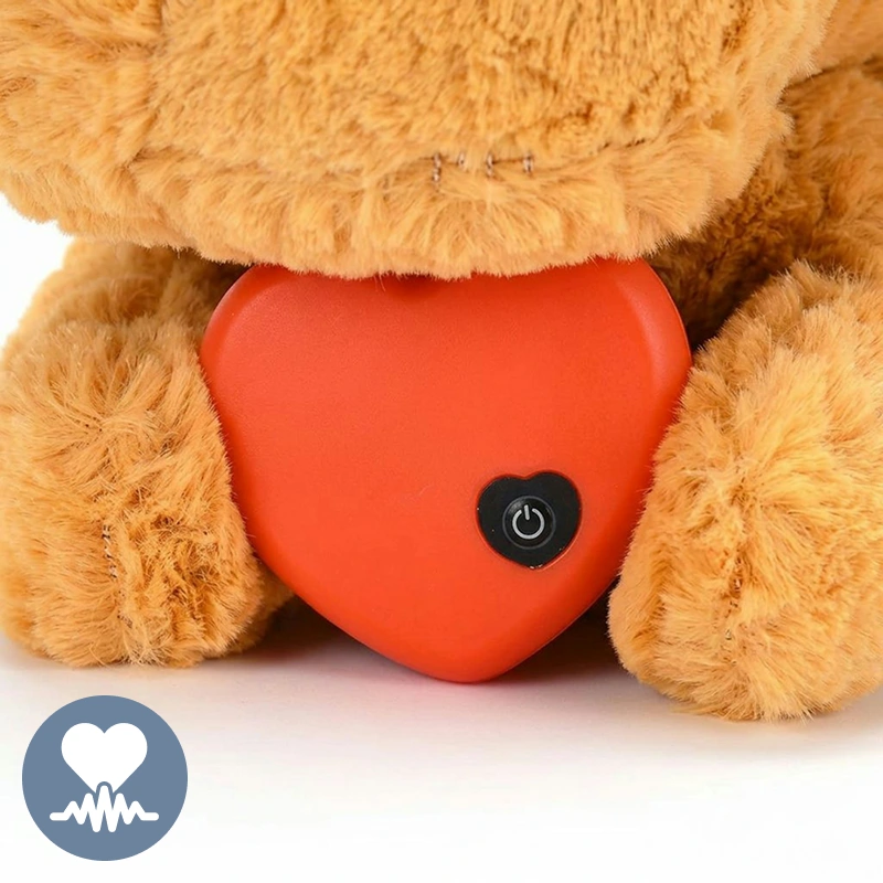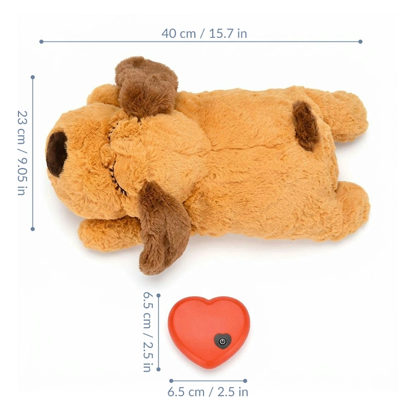 Onze nieuwe pup heeft het knuffelspeeltje als beste vriendje gekozen. Het zachte hartslaggeluid kalmeert hem, vooral als er storm is. Geen slapeloze nachten meer gehad sinds.