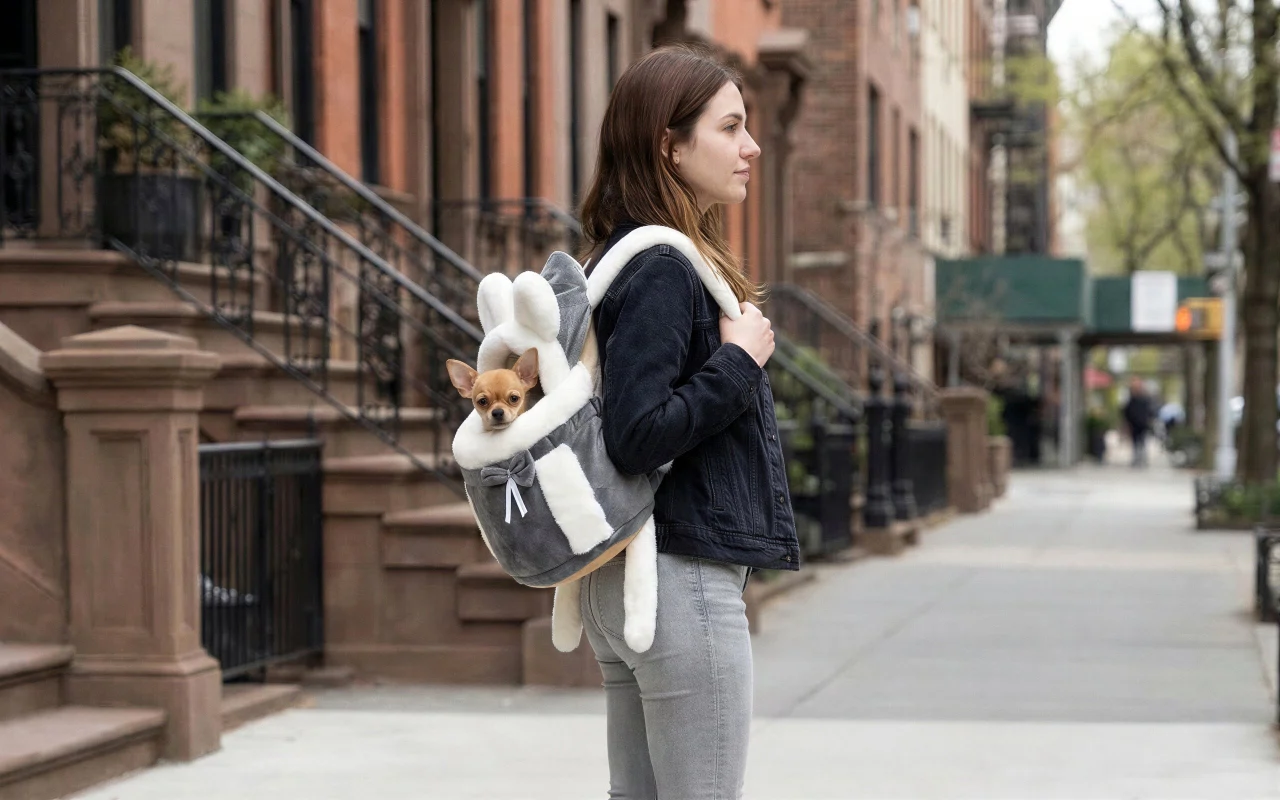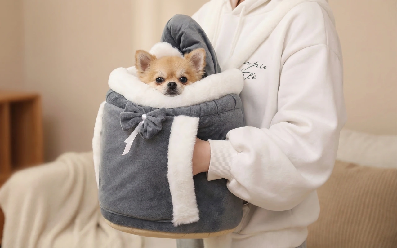 Onze hond weigerde vroeger winterwandelingen. Nu stop ik hem in deze knusse tas en gaat hij blij mee terwijl ik boodschappen doe, volledig beschermd tegen de kou.