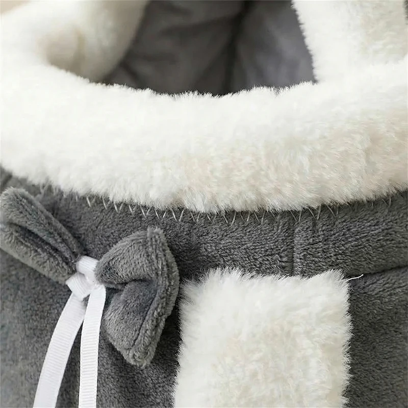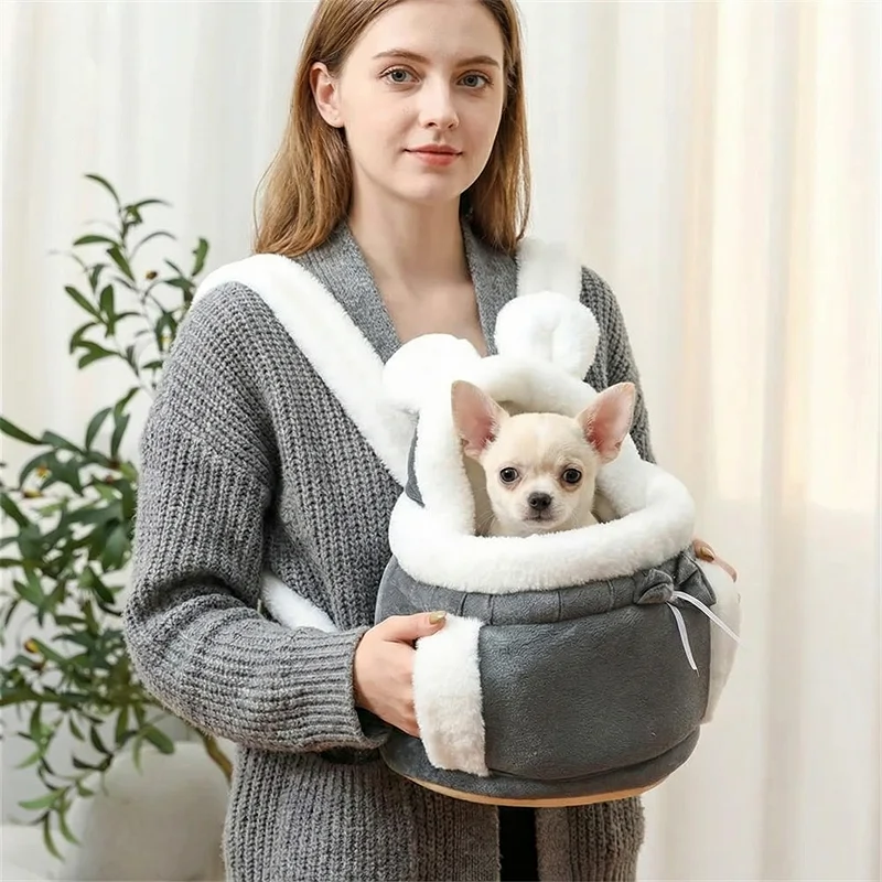 Mijn vrouw gebruikt deze drager voor onze kleine hond tijdens winterwandelingen. De pluche binnenkant houdt hem lekker warm en het trekkoord geeft me een veilig gevoel.
