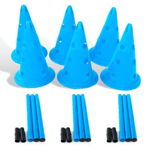 De set bevat alle essentials: kegels, palen en horden. Alles wat je nodig hebt om een stimulerend behendigheidsparcours te maken is inbegrepen.