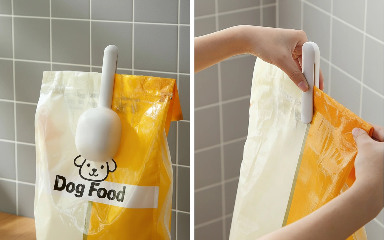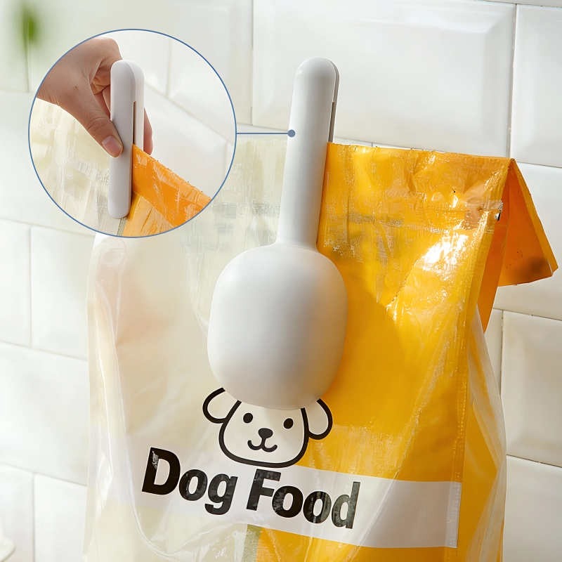 Ik gebruik deze schep elke dag graag omdat mijn handen schoon blijven en hondenvoer nooit morst. De clip zorgt ervoor dat het voer langer vers blijft.