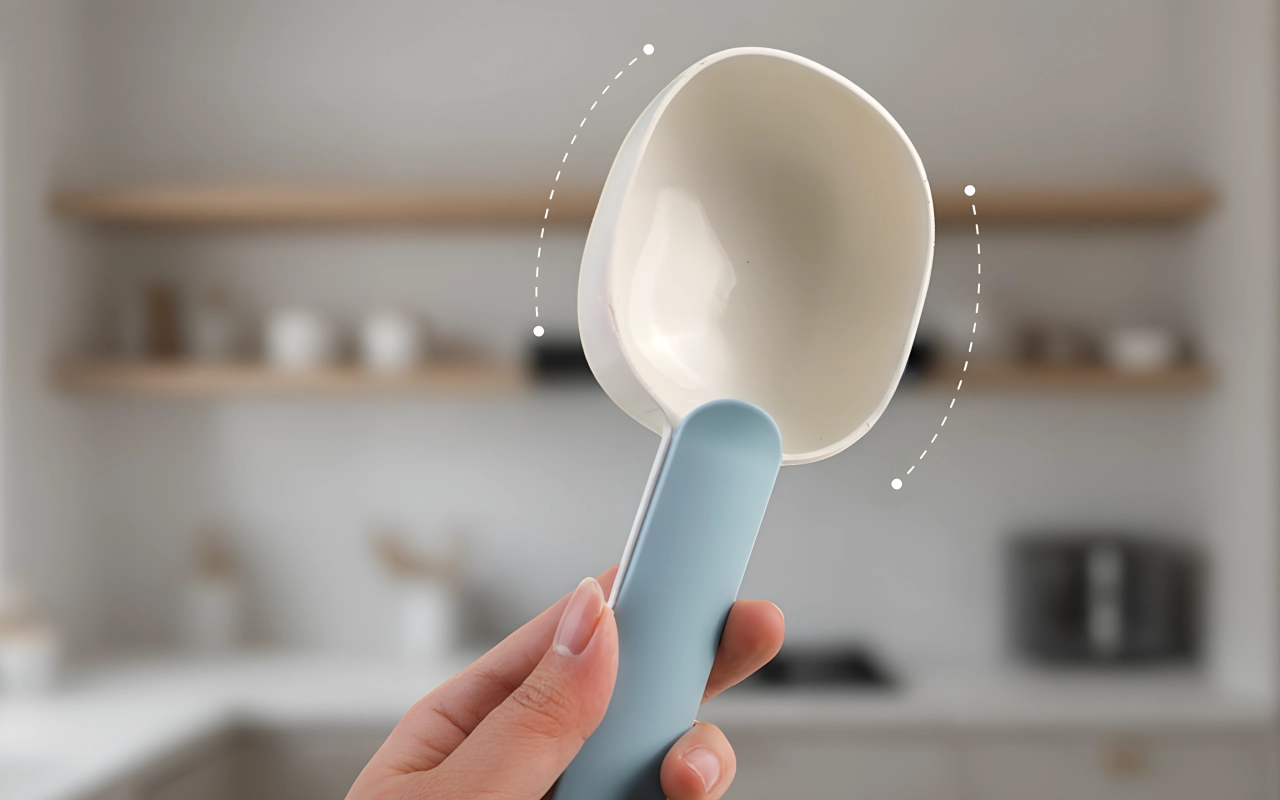 Geniet van netjes voeren door handen elke schoon te houden. De gebogen vorm maakt opscheppen eenvoudig en voorkomt morsen.