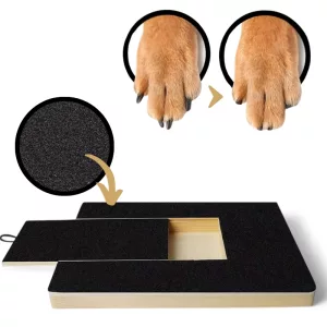 Mijn beagle wordt echt enthousiast om met zijn poten op dit bord te krabben! Zijn nagels zijn veel korter en ik hoef me geen zorgen meer te maken over de vloeren.