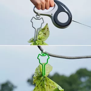 Onze zakkenhouder kan met elke hondenriem worden gebruikt, waardoor hij veelzijdig is. Deze aanpasbaarheid maakt het een handig accessoire voor alle hondenbezitters.