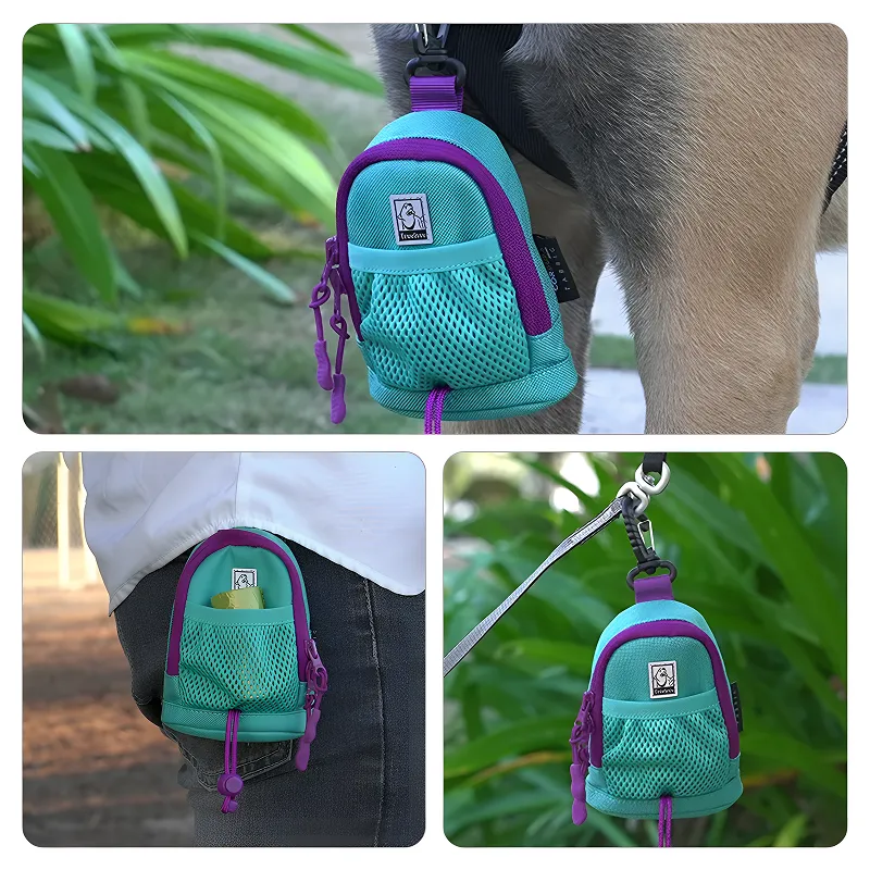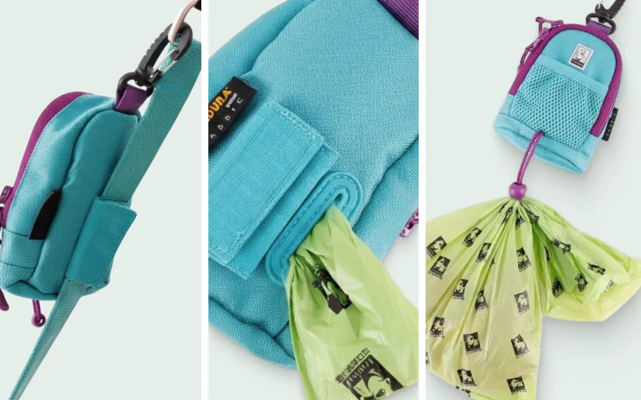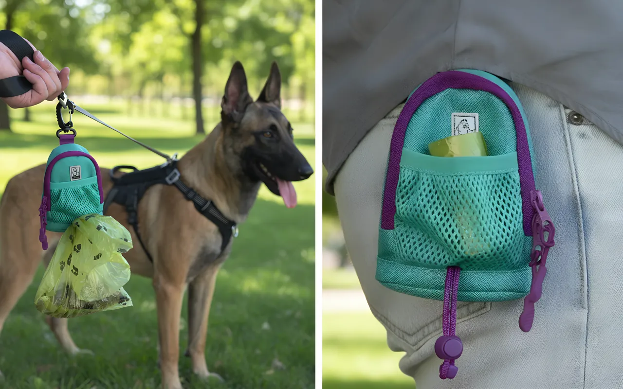 Ik ga altijd snel de deur uit en de zakjeshouder bespaart veel tijd. Gewoon een zakje pakken—niet meer zoeken in mijn tas in het park.