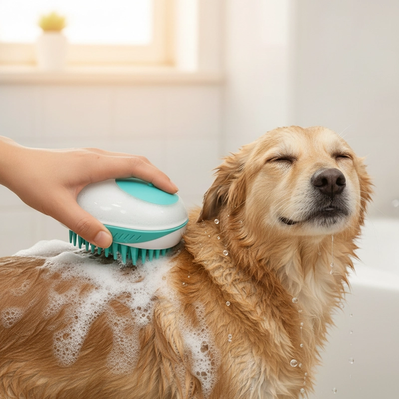 Primdog Hond Badborstel maakt dagelijkse verzorging tot pure vreugde. Zachte siliconen borstelharen verwijderen eenvoudig vuil en losse haren. Je harige vriend blijft elke keer schoon en gelukkig.