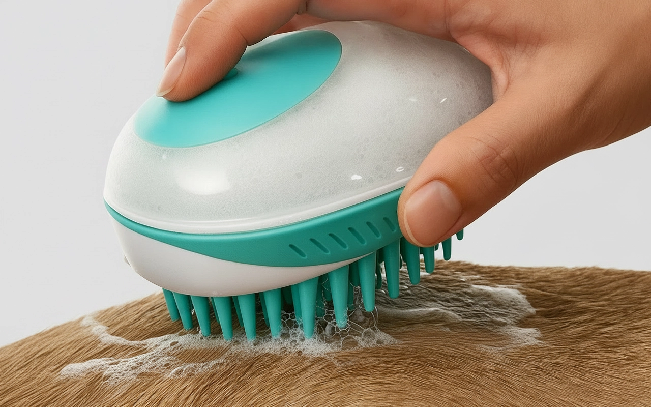 Flexibele borstelharen geven een rustgevende massage tijdens elke wasbeurt. Je huisdier voelt zich kalm terwijl zijn vacht brandschoon wordt.