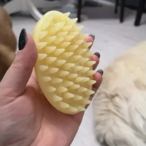 De siliconen borstel is gemakkelijk te gebruiken en zacht voor de huid van mijn hond. Het maakt badtijd veel gemakkelijker en werkt zelfs als een massageapparaat.