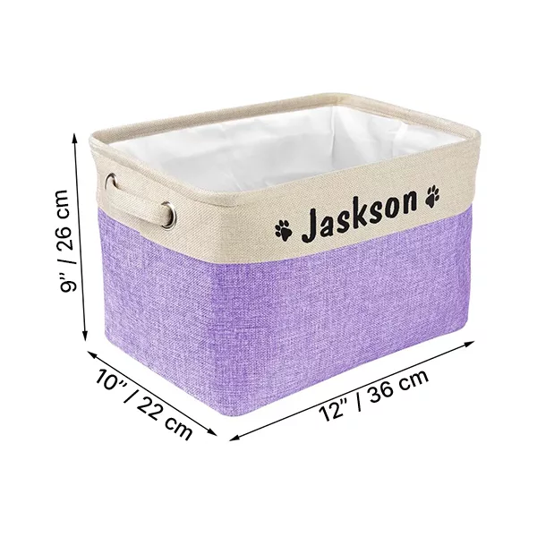 Organiseer de spullen van je hond met onze stevige, stijlvolle opbergmand. Het helpt je om wat ruimte vrij te maken en orde in huis te houden. Met de naam van je huisdier op de mand wordt het echt uniek.