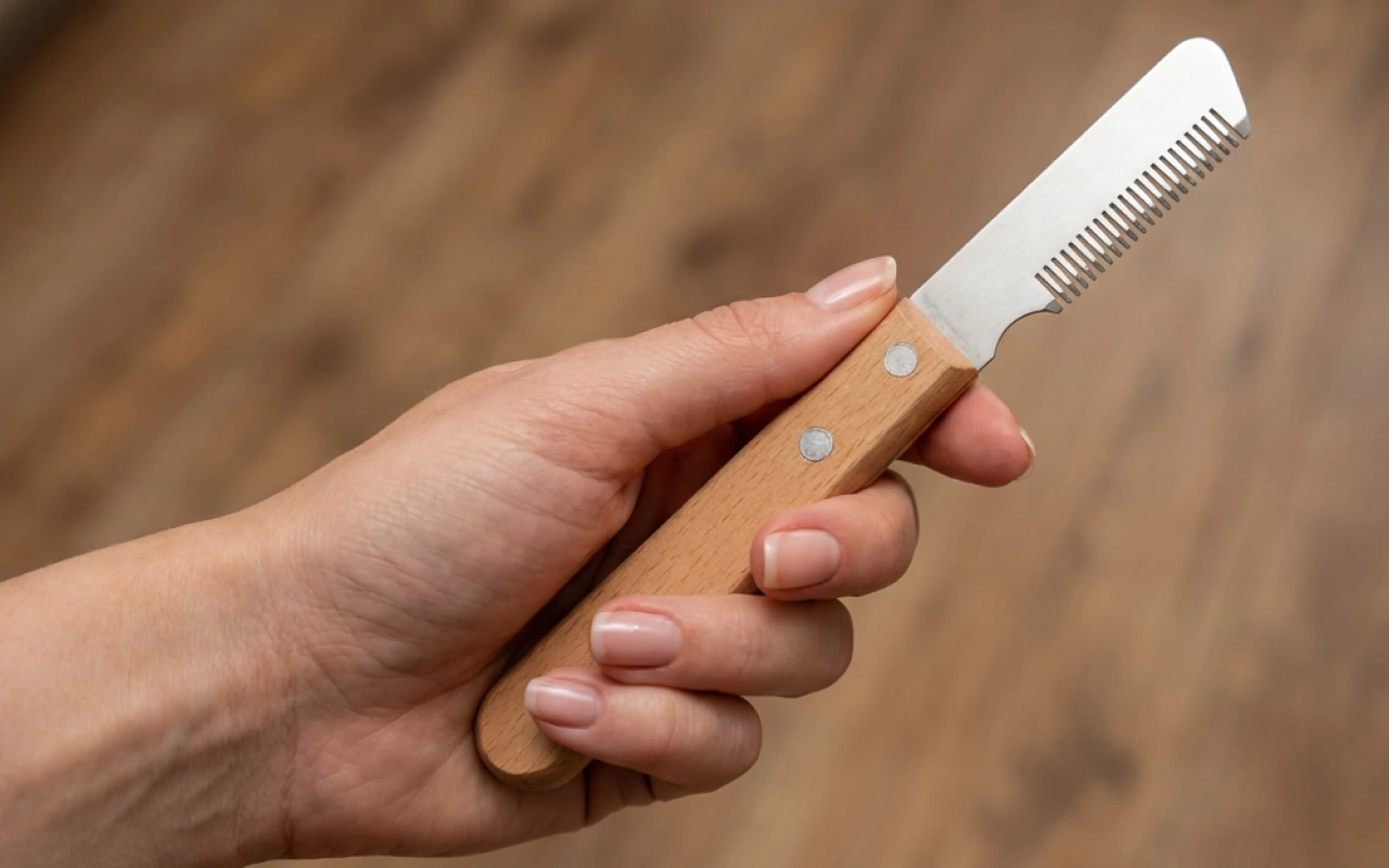 Honden Plukmes Huisdier Haarverwijderaar Trimtool met Houten Handvat