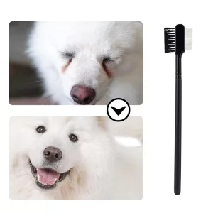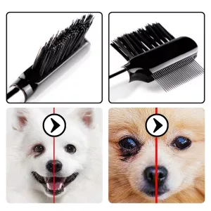 Dit hulpmiddel voert twee taken uit: het ontwarren van de vacht rond de ogen van je huisdier en het verwijderen van traanvlekken.