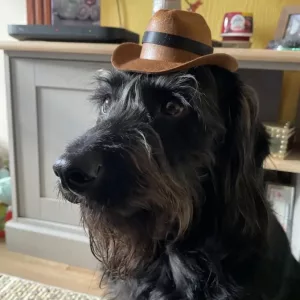 Ik was niet zeker of mijn hond de hoed op zou houden, maar tot mijn verbazing doet hij dat. Het past goed en lijkt comfortabel voor hem. Ziet er stijlvol uit en is goed gemaakt. Dank je.