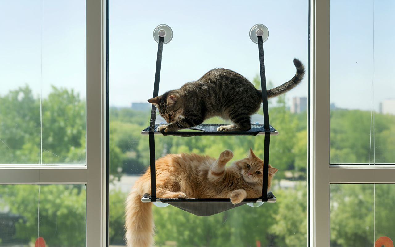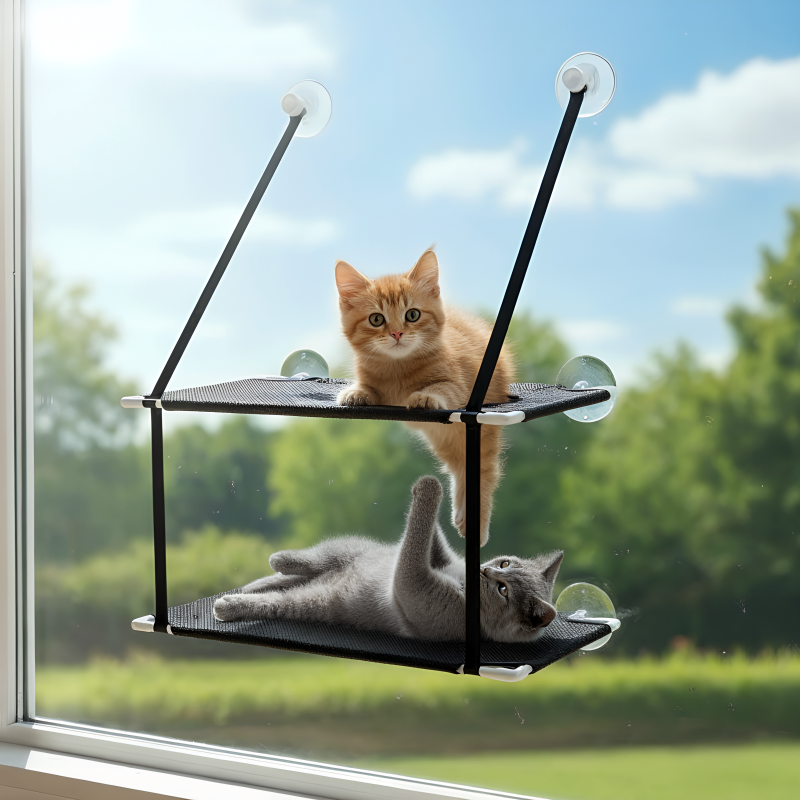 Heel blij met de kattenhangmat! Mijn twee nieuwsgierige haarballen stoeien erop en gebruiken beide lagen zonder dat hij omvalt. Geweldig voor mijn drukke jongens.