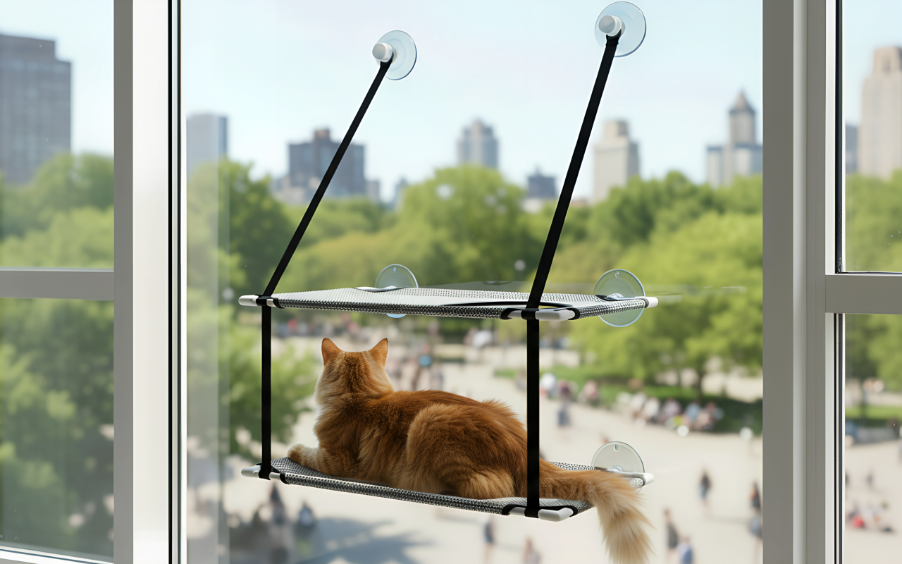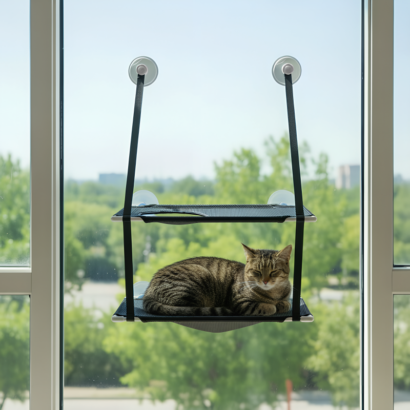 Draagt tot 25 kg met stevige zuignappen en duurzaam textiel. Zelfs grote of speelse katten blijven veilig ondersteund zonder zorgen.