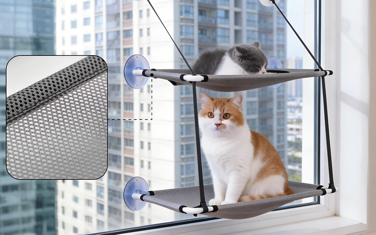 Laat elke kat dagelijks genieten van frisse lucht en een mooi uitzicht. De Primdog Dubbele Kattenhangmat houdt huisdieren veilig en gelukkig binnen. Sterke zuignappen houden hem eenvoudig vast op elk raamoppervlak. Lichtgewicht onderdelen zorgen voor een snelle montage zonder gereedschap.