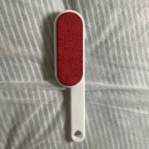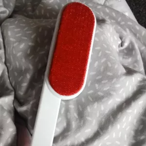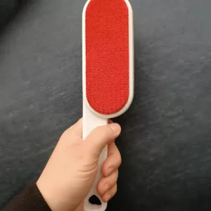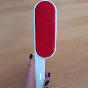Werkt goed, maar de rode stof op de borstel kan gemakkelijk vuil laten zien. Toch blijft het een must-have voor huisdiereigenaren.