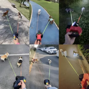 Twee honden uitlaten is nu eenvoudiger met de Primdog intrekbare riem. Je kunt je huisdieren zonder zorgen meenemen op een avondwandeling. Dankzij de zaklamp zijn ze altijd in het zicht. Deze riem is een stap richting comfortabele, plezierigere wandelingen!
