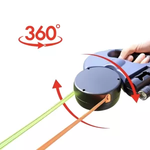 De riem draait mee, waardoor mijn honden niet in de knoop raken. Het handvat ligt comfortabel in de hand, zelfs na een lange wandeling.