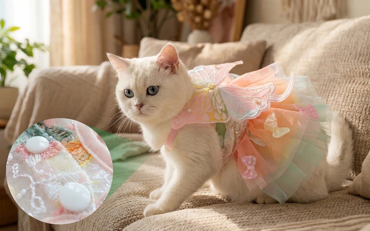 Ik heb dit gekocht voor de kat van mijn zus en we smolten allemaal. Het kant en de vleugels zien er schattig uit en de zijde voelt zacht aan op haar huid.