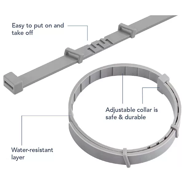 Deze vlooien- en tekenhalsband biedt bescherming tot wel 8 maanden – de langst houdbare bescherming in één toepassing, zonder dat een recept nodig is. Dit betekent dat je hem slechts een paar keer per jaar hoeft te vervangen. Het is ook minder rommelig aan te brengen dan vlooi- en tekenmiddelen in druppelvorm. De halsband is waterbestendig en kan af en toe nat worden. Voor het beste resultaat haal je hem van je hond af voor het baden of zwemmen. Om de 8 maanden bescherming te behouden, mogen honden niet vaker dan één keer per maand worden gewassen. Deze vlooienhalsband kan worden gebruikt bij honden vanaf 7 weken oud. Hij past bij honden met een nek tot 25 inch, waardoor hij geschikt is voor zowel grote als kleine rassen. Het getande ontwerp zorgt ervoor dat de halsband op zijn plaats blijft, zelfs bij actieve honden.
