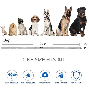 Tijdens het spelen buiten of wandelen in hun favoriete park loopt je hond het risico in contact te komen met vervelende parasieten. Zelfs binnenhuisdieren hebben bescherming nodig tegen parasieten, omdat deze door iedereen die in en uit je huis komt mee naar binnen kunnen worden gebracht. Onze vlooienhalsband voor honden biedt volledige lichaamsbescherming tegen zowel vlooien als teken. Het is effectief tegen volwassen vlooien, vlooieneieren, vlooienlarven en het doodt ook volwassen teken, tekenlarven en tekennimfen.