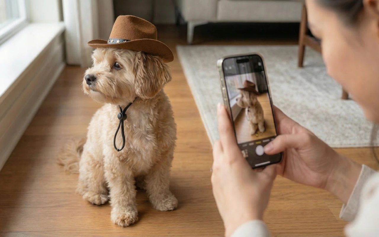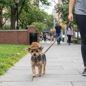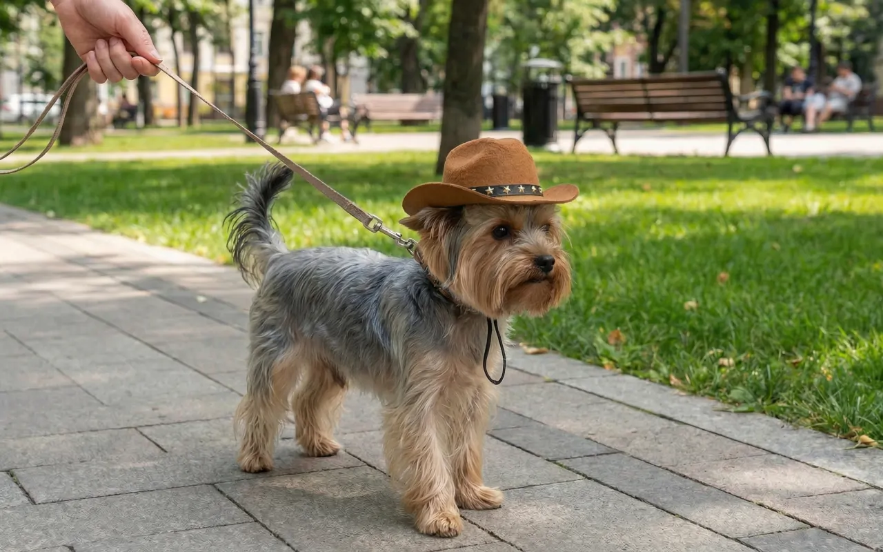 Ik heb dit kleine cowboyhoedje voor mijn hond gekocht, en nu verandert elke avondwandeling in een kleine parade. Hij loopt trots rond en mensen blijven maar lachen.